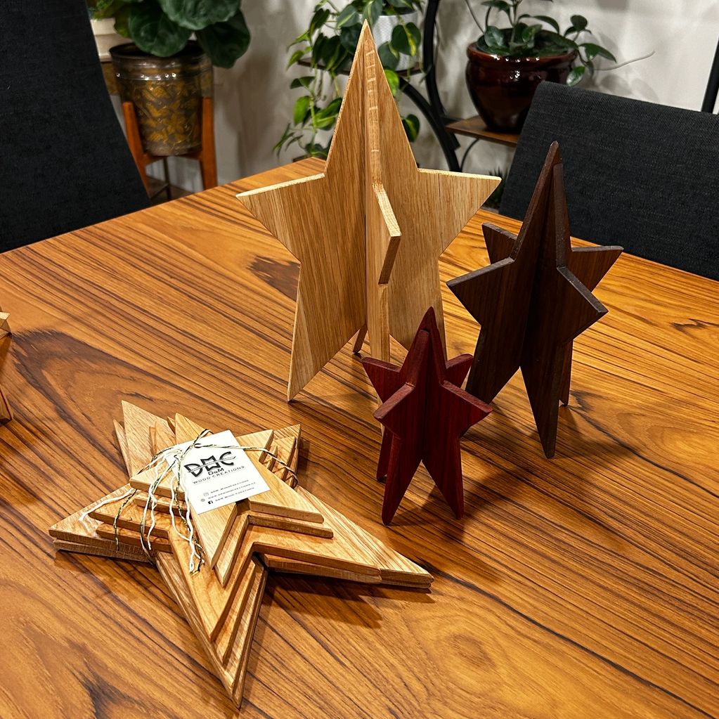 Set of 3 stars (S, M, L) to decorate your home, or give as a gift! The pictured set is made from solid hardwoods - Ash, Walnut and Padauk.
