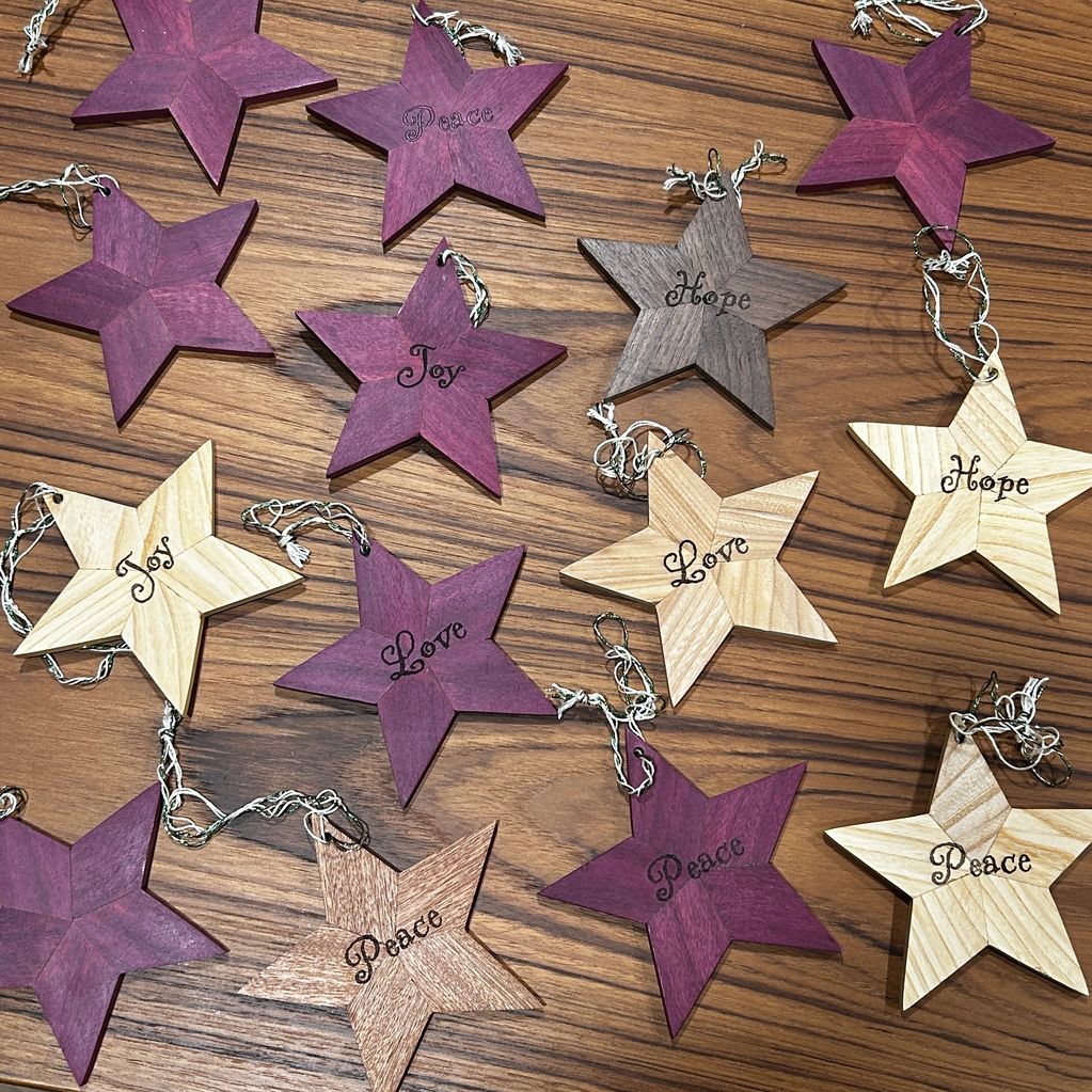 Set of 3 stars (S, M, L) to decorate your home, or give as a gift! The pictured set is made from solid hardwoods - Ash, Cherry and Hickory.